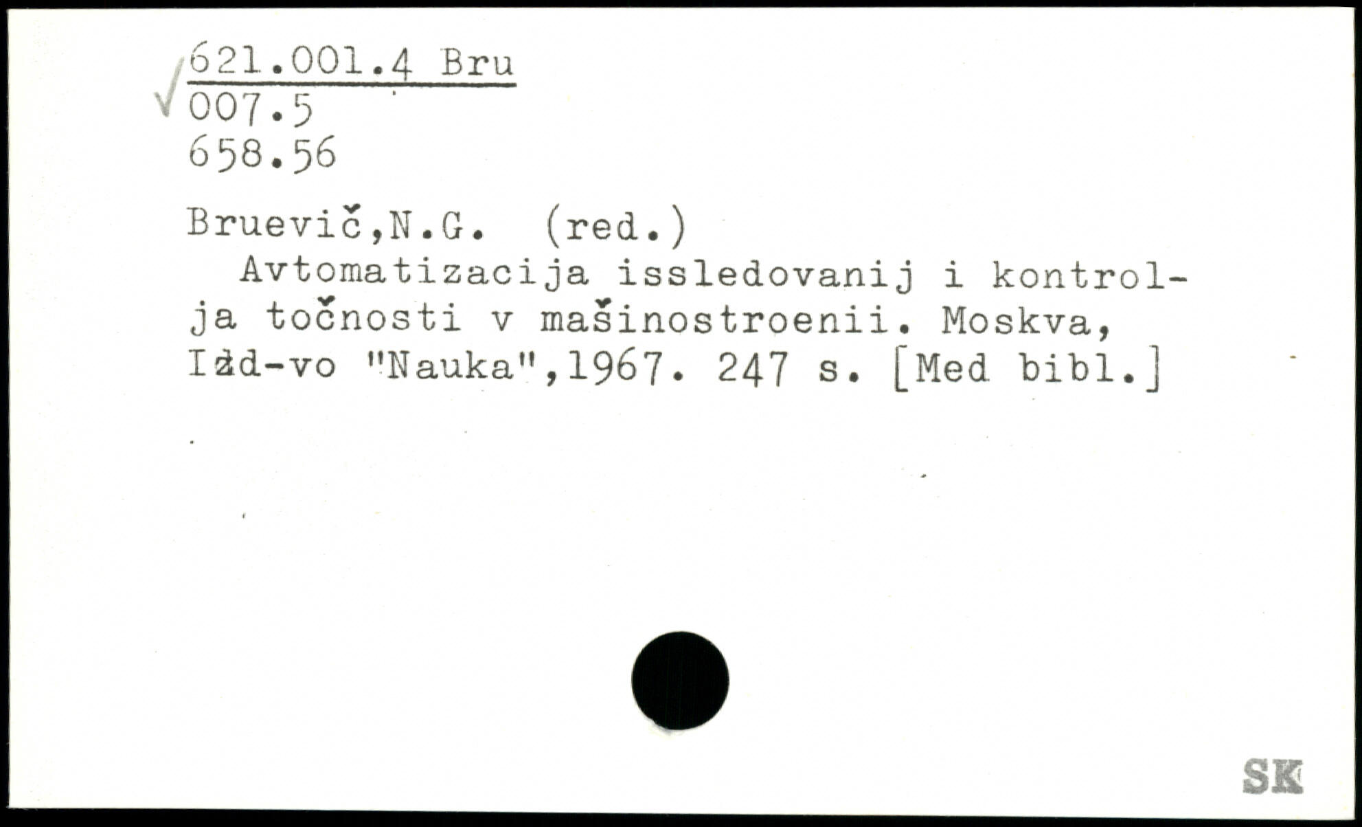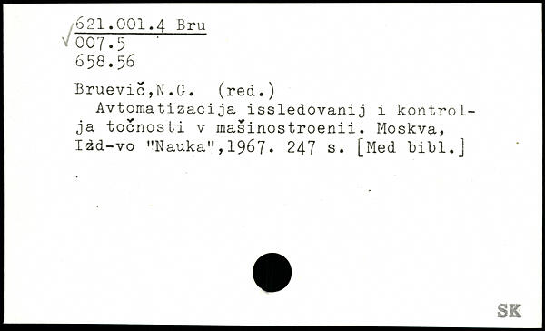 Avtomatizacija issledovanij i kontrolja tocnosti v masinostroenii. Moskva, Idd-vo "Nauka",1967.