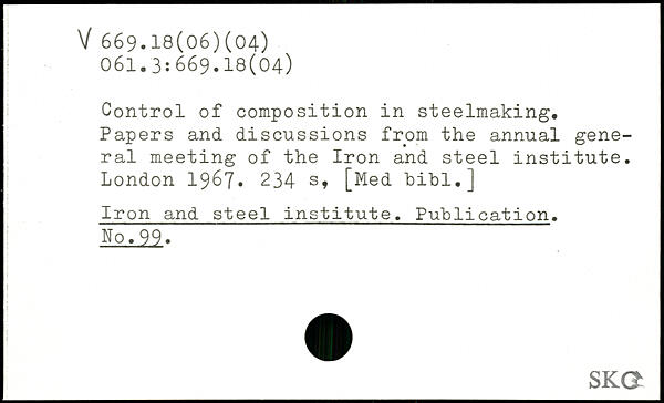 Control of composition in steelmaking. Papers and discussions from the annual general meeting of the Iron and steel institute.