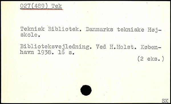 Teknisk Bibliotek. Danmarks tekniske Højskole. Biblioteksvejledning. Ved H.Iiolst.