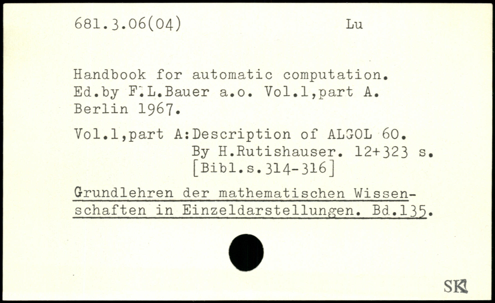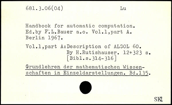 Handbook for automatic computation. Ed.by F.L.Bauer a.o. Vol.l,part A.
