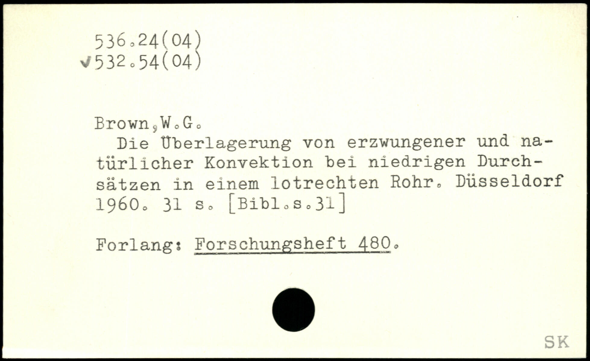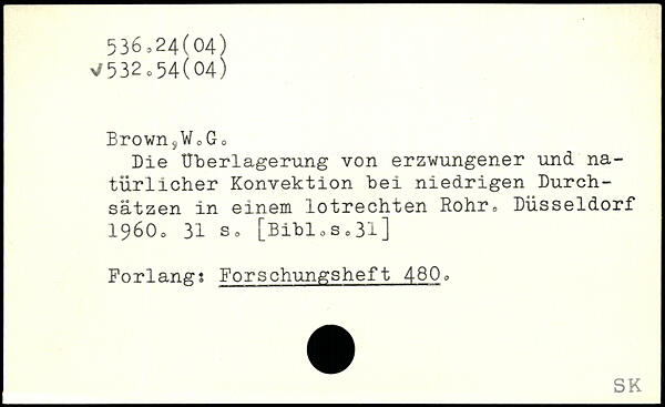 Die Überlagerung von erzwungener und natürlicher Konvektion bei niedrigen Durchsätzen in einem lotrechten Rohr. Düsseldorf 1960.