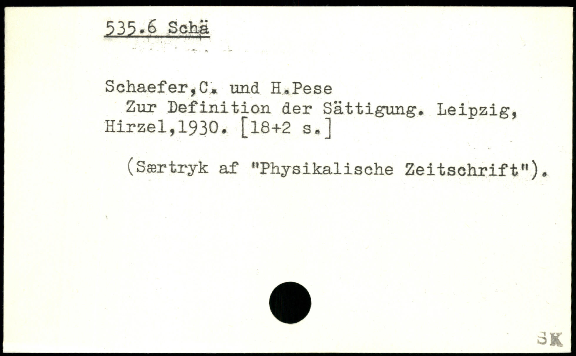 Schaefer,C, und H.Pese Zur Definition der Sättigung.