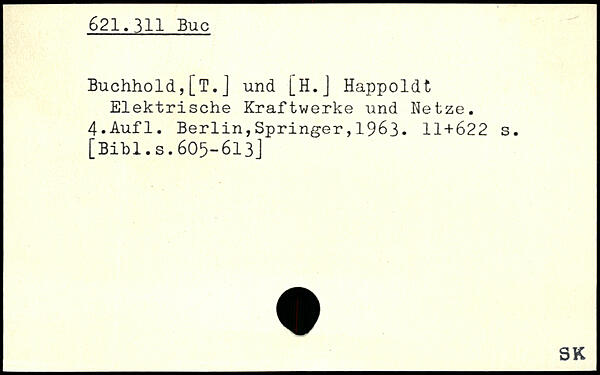 Buchhold,[T.J und [H.J Happoldt Elektrische Kraftwerke und Netze.
