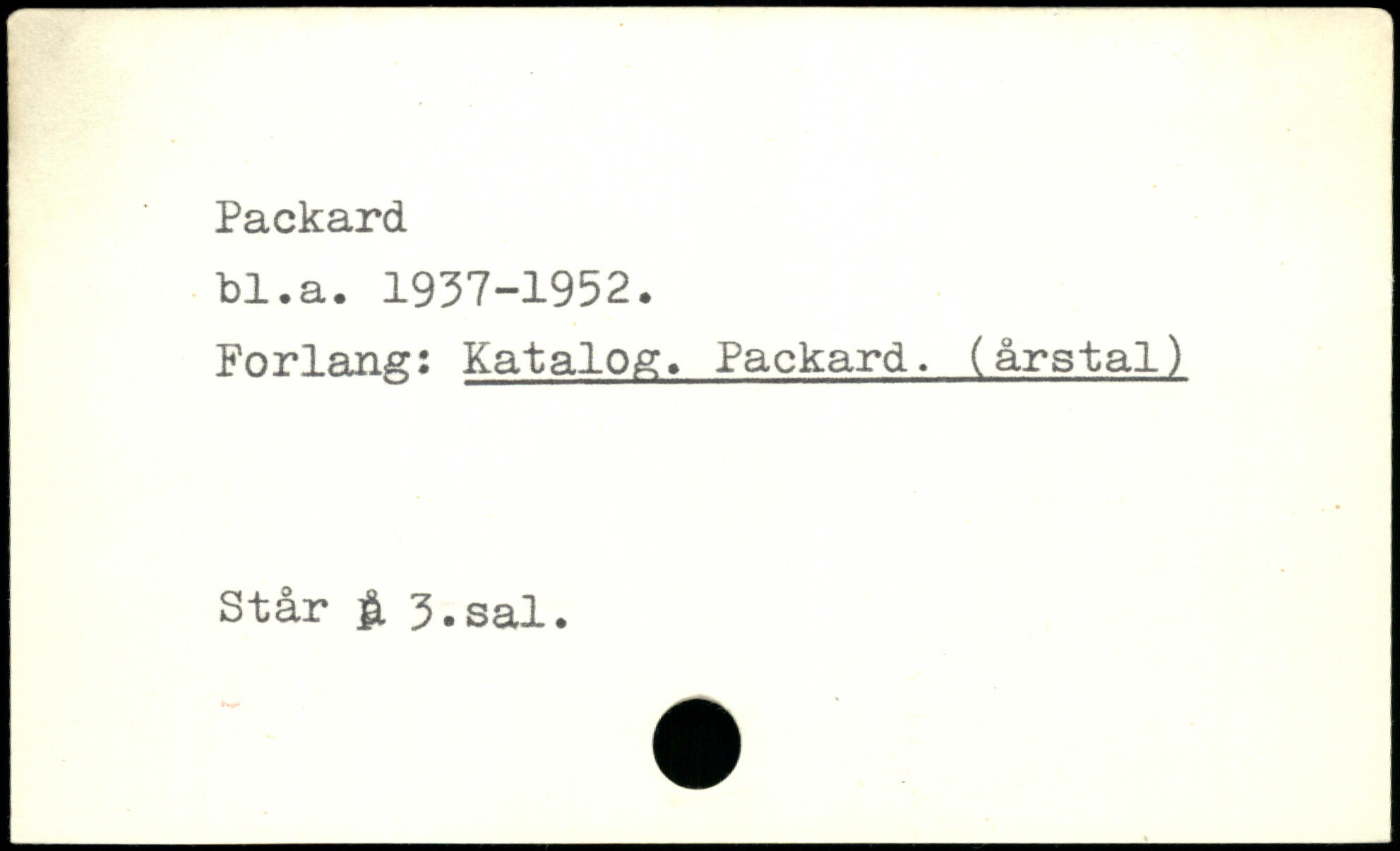 Forlang: Katalog. Packard, (årstal) Står å 3.sal.
