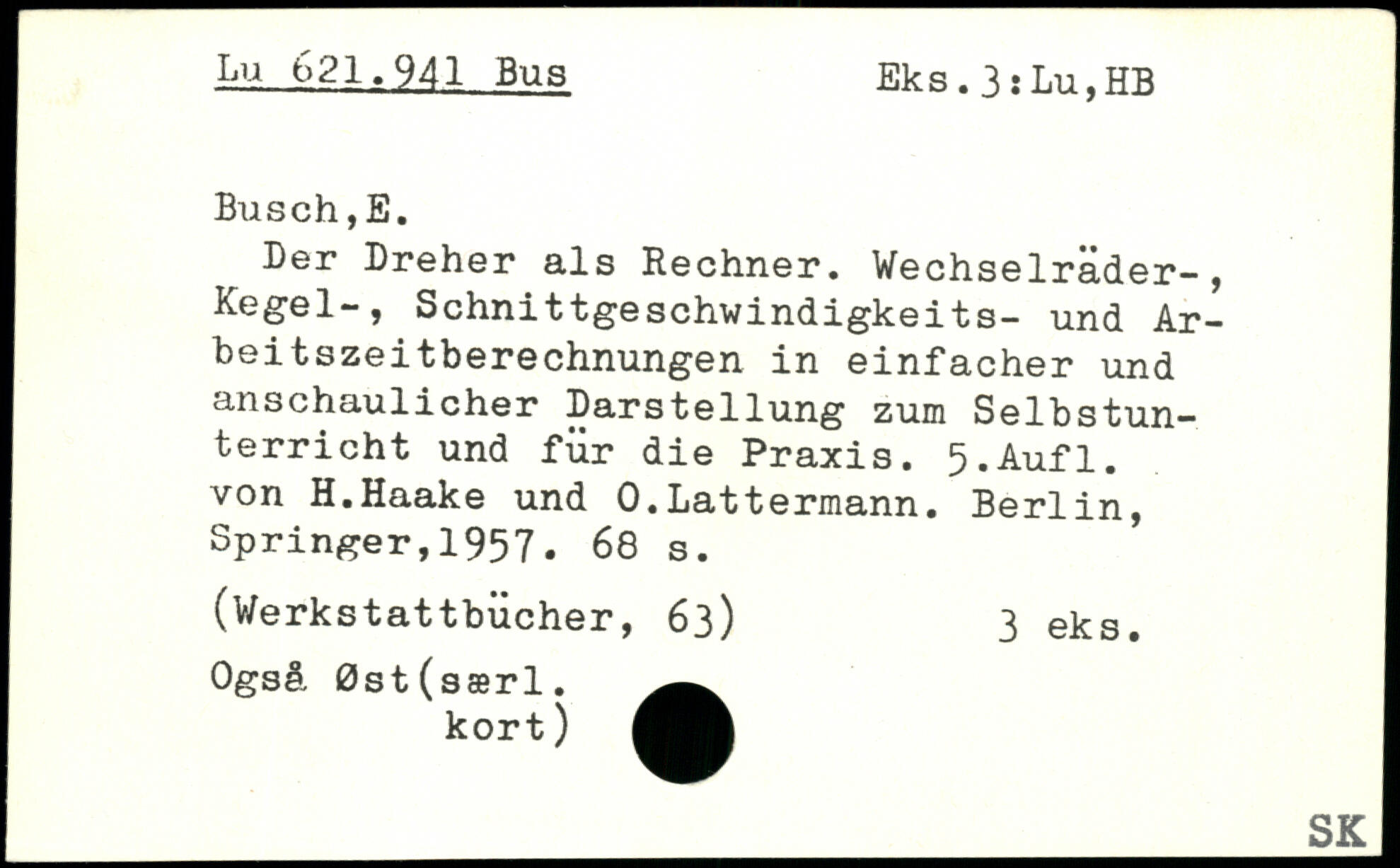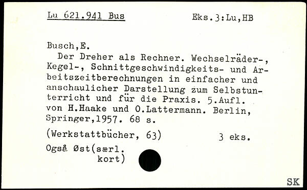 r Der Dreher als Rechner. Wechselräder-, Kegel-, Schnittgeschwindigkeits- und Ar-beitszeitberechnungen in einfacher und anschaulicher Darstellung zum Selbstunterricht und für die Praxis.