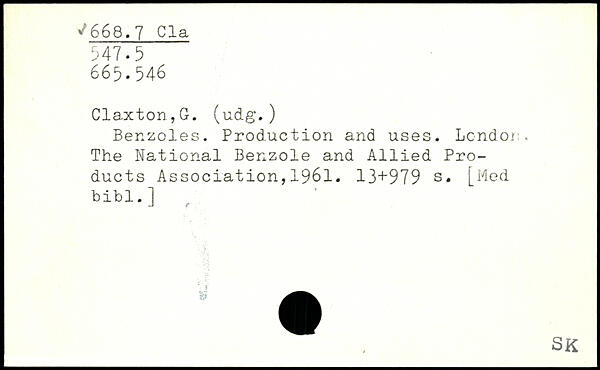 Benzoles. Production and uses. London. The National Benzole and Allied Products Association,1961.