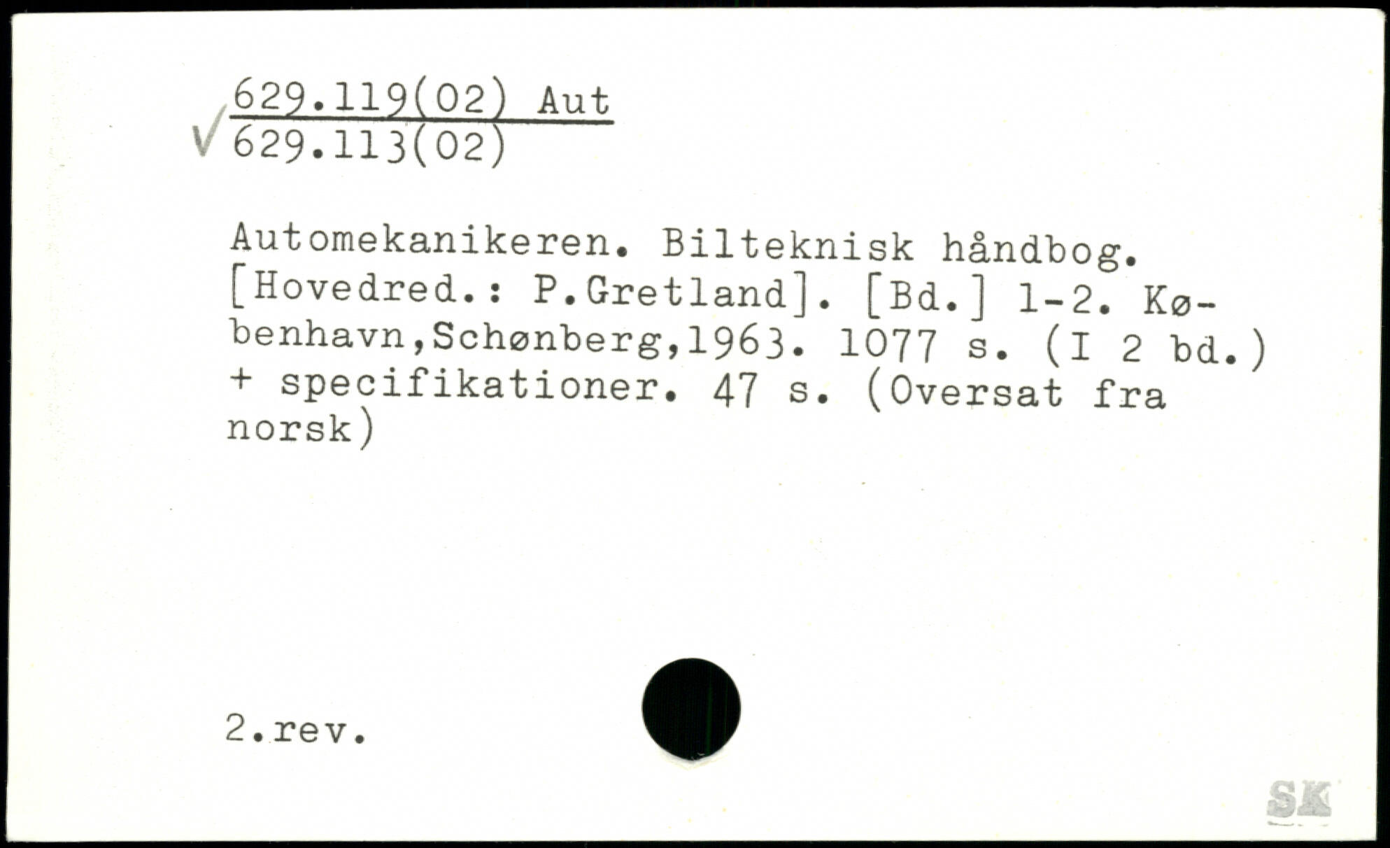 Automekanikeren. Bilteknisk håndbog. [Hovedred.: P.Gretland]. [Bd.] 1-2.