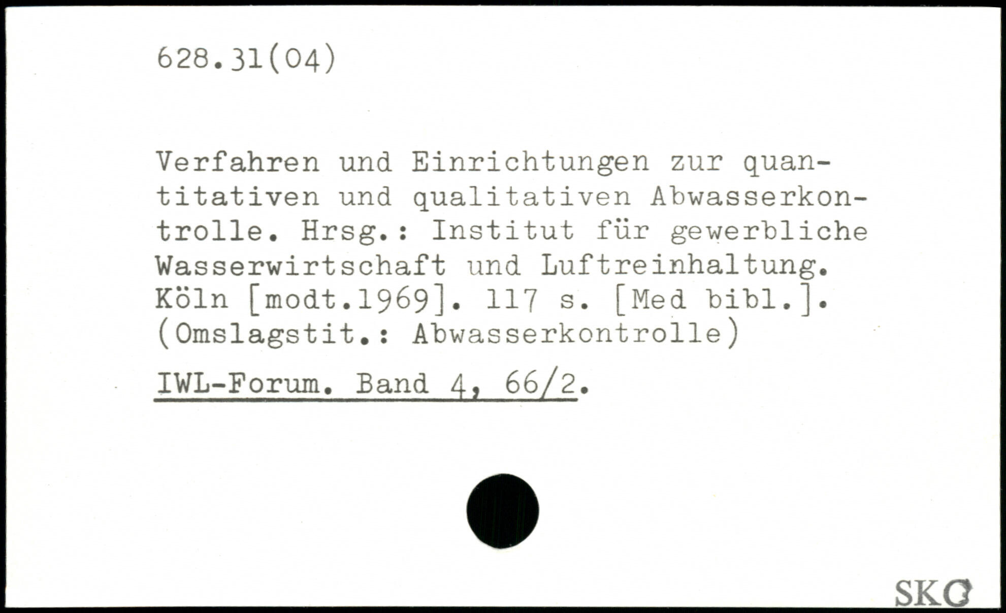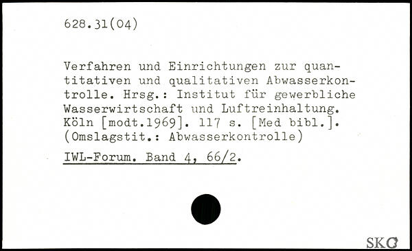 Verfahren und Einrichtungen zur quantitativen und qualitativen Abwasserkontrolle. Hrsg.: Institut für gewerbliche Wasserwirtschaft und Luftreinhaltung. Köln [modt.1969].