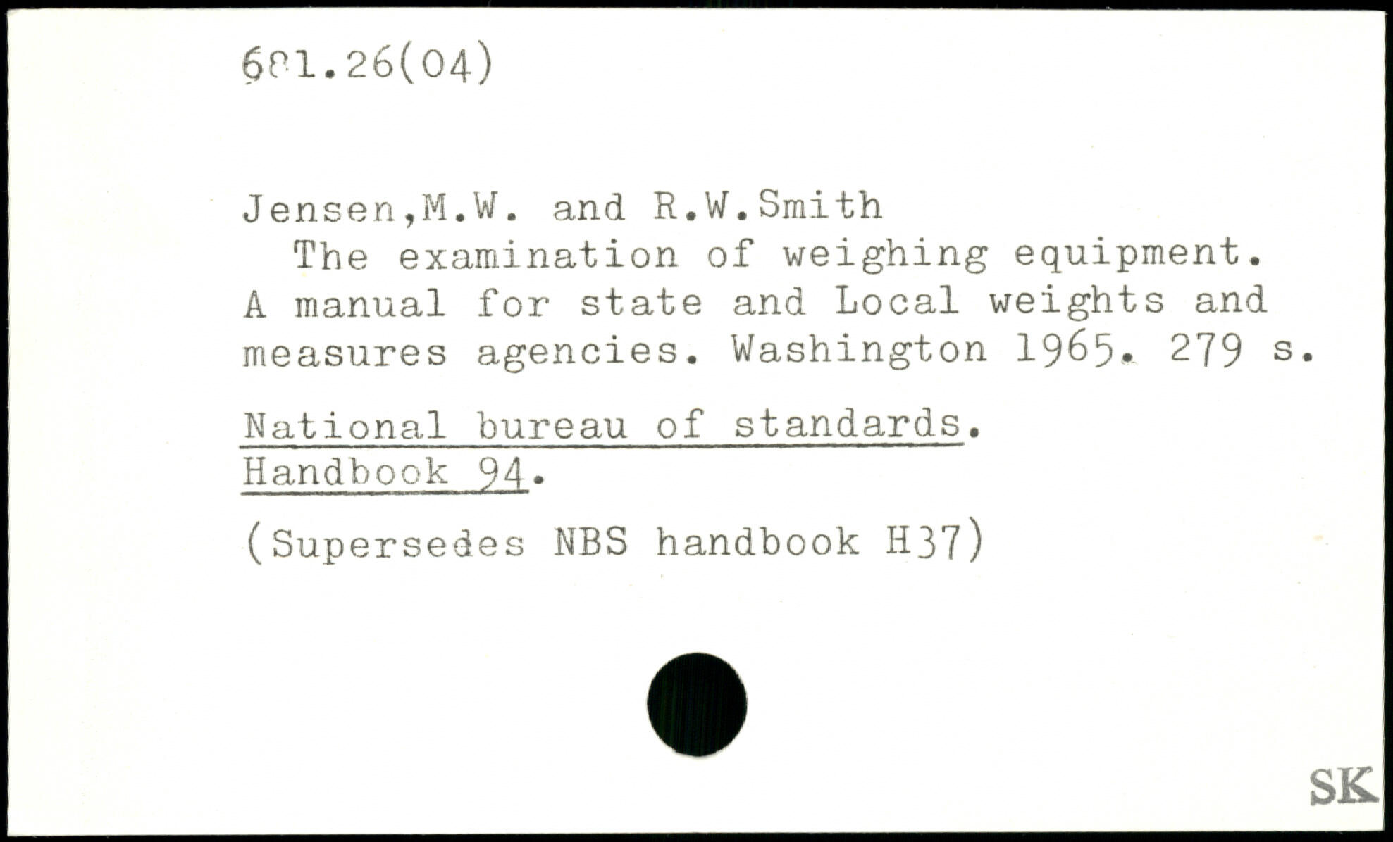 The examination of weighing equipment. A manual for state and Local weights and measures agencies.