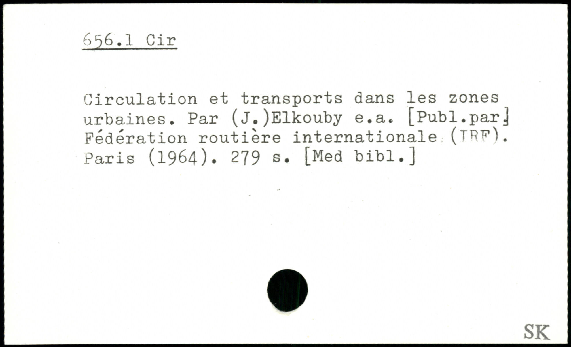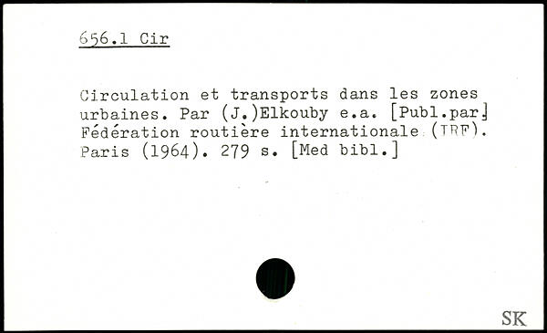 Circulation et transports dans les zones urbaines. Par (J.)Elkouby e.a. [Publ.parJ Fédération routière internationale (TPF). Paris (1964).