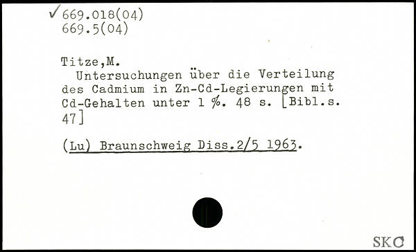 Untersuchungen über die Verteilung des Cadmium in Zn-Cd-Legierungen mit Cd-Gehalten unter 1 ./o
