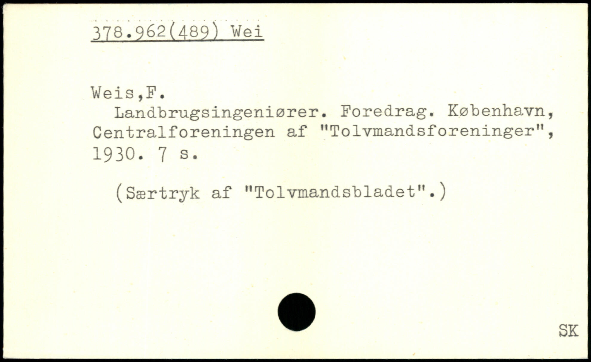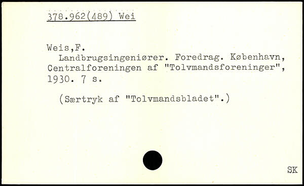 Landbrugsingeniører. Foredrag. København, Centralforeningen af "Tolvmandsforeninger", 1930.