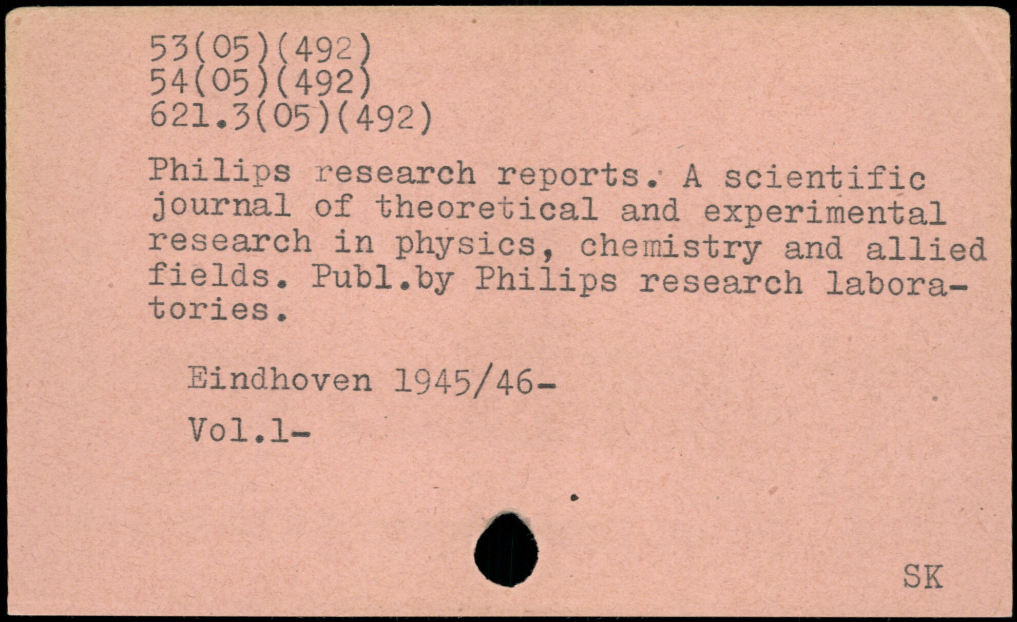 Philips research reports. A scientific journal of .theoretical and experimental research i n physics, chemistry and allied fields.
