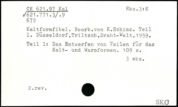 Kaltformfibel. Bearb.von K.Schimz. Teil 1.