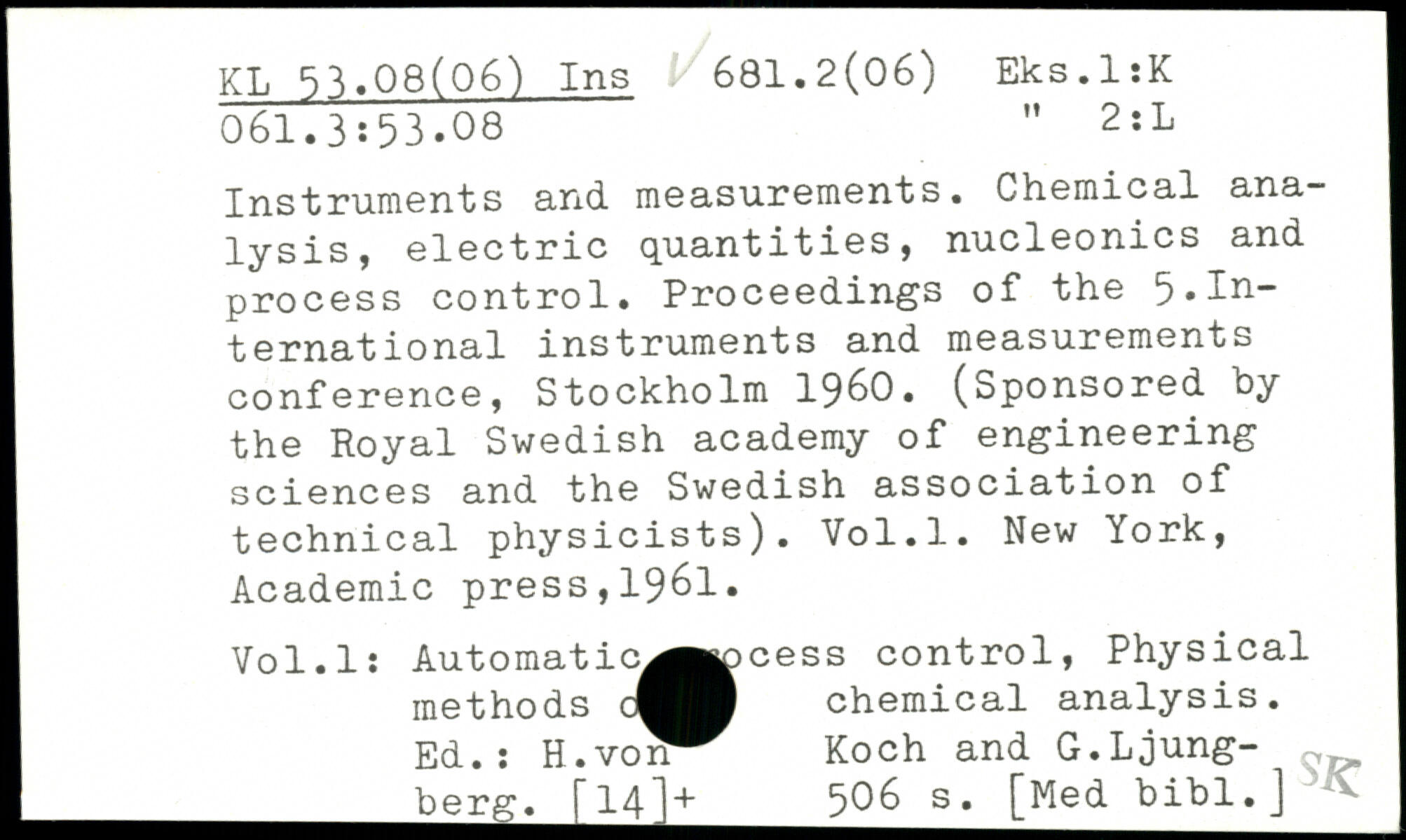 Instruments and measurements. Chemical analysis, electric quantities, nucleonics and process control. Proceedings of the 5 .In~ ternational instruments and measurements conference