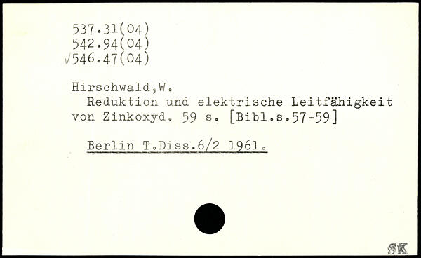 Reduktion und elektrische Leitfähigkeit von Zinkoxyd