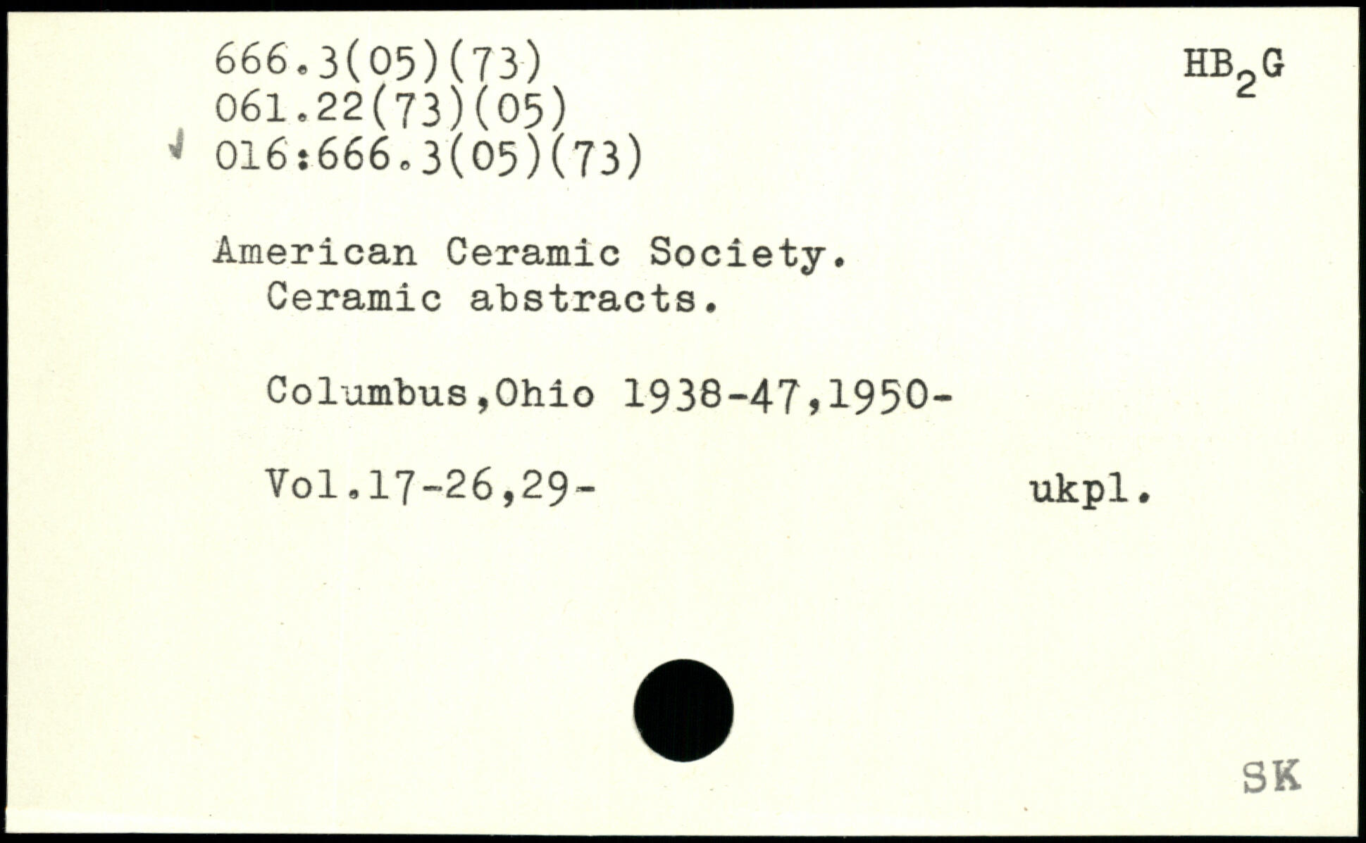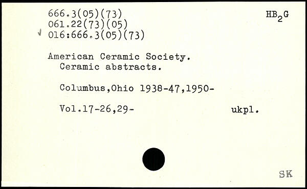 American Ceramic Society. Ceramic abstracts. CoIambus,Ohio 1938-47,1950-