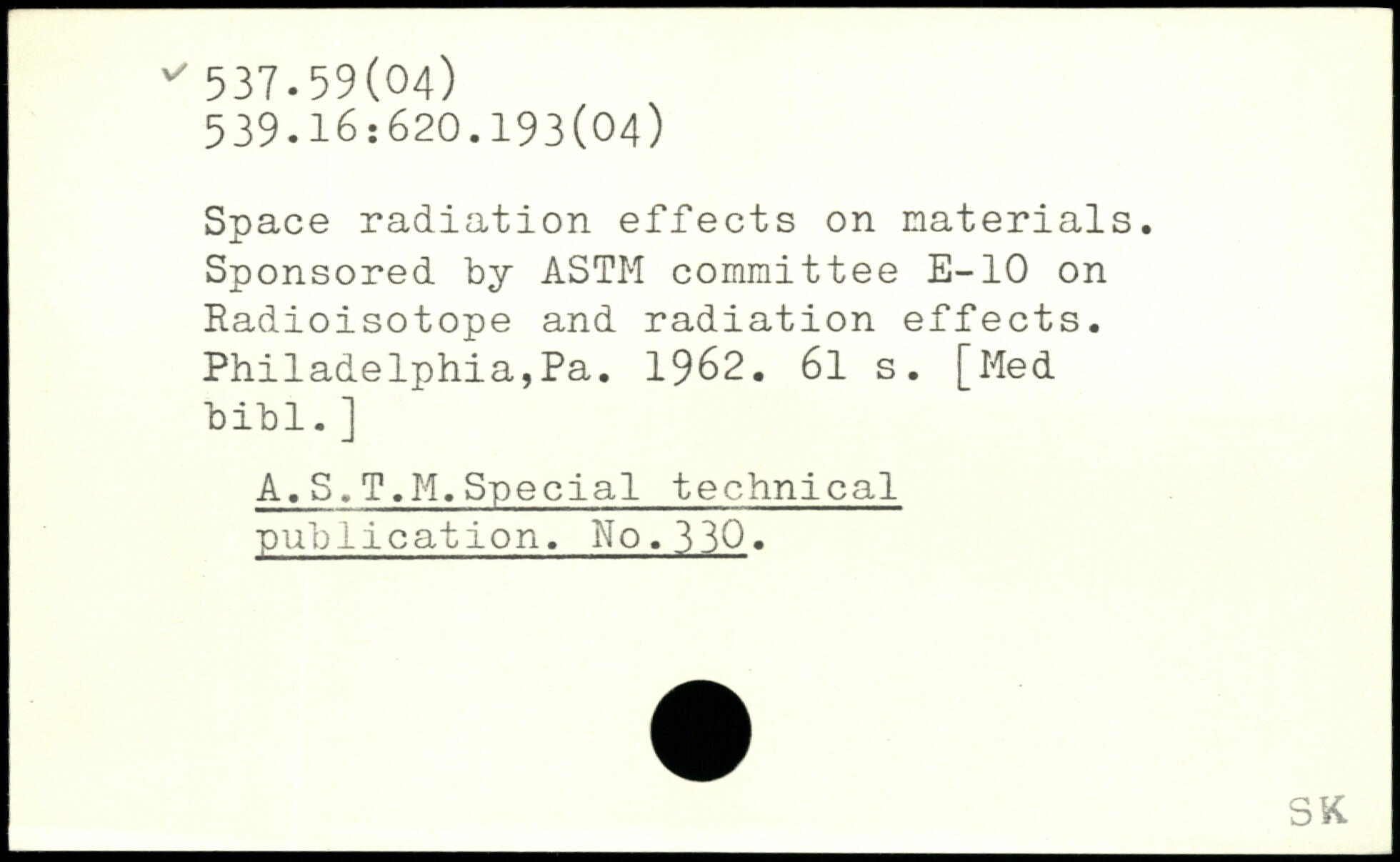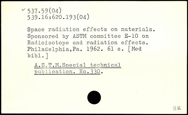 Space radiation effects on materials. Sponsored by ASTM committee E-10 on Radioisotope and radiation effects. Philadelphia,Pa. 1962.