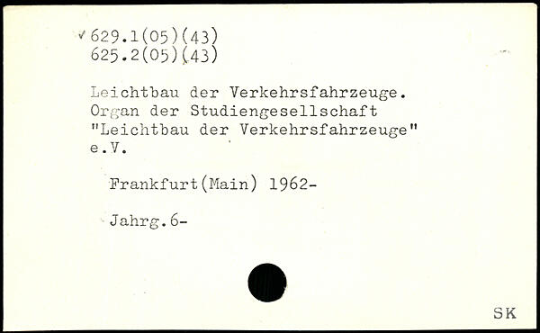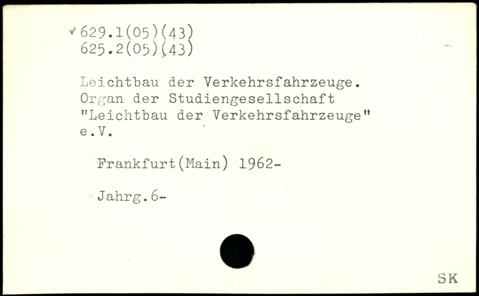 Leichtbau der Verkehrsfahrzeuge. Organ der Studiengesellschaft "Leichtbau der Verkehrsfahrzeuge" e. V. Frankfurt(Main) 1962-Jahrg.6-