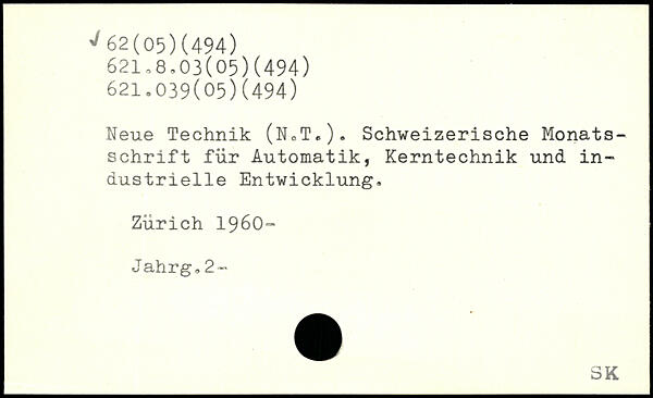 Neue Technik (N,T.). Schweizerische Monatsschrift für Automatik, Kerntechnik und industrielle Entwicklung. Zürich 1960- Jahrg, 2-’