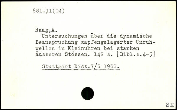 Untersuchungen über die dynamische Beanspruchung zapfengelagerter Unruhwellen in Kleinuhren hei starken äusseren Stössen. 14-