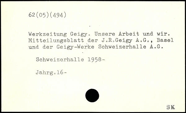 Werkzeitung Geigy, Unsere Arbeit und wir,, Mitteilungsblatt der J^RoGeigy A,G,, Basel und der Geigy-Werke Schweizerhalle A,G, Schweizerhalle 1958" Jahrgo16-