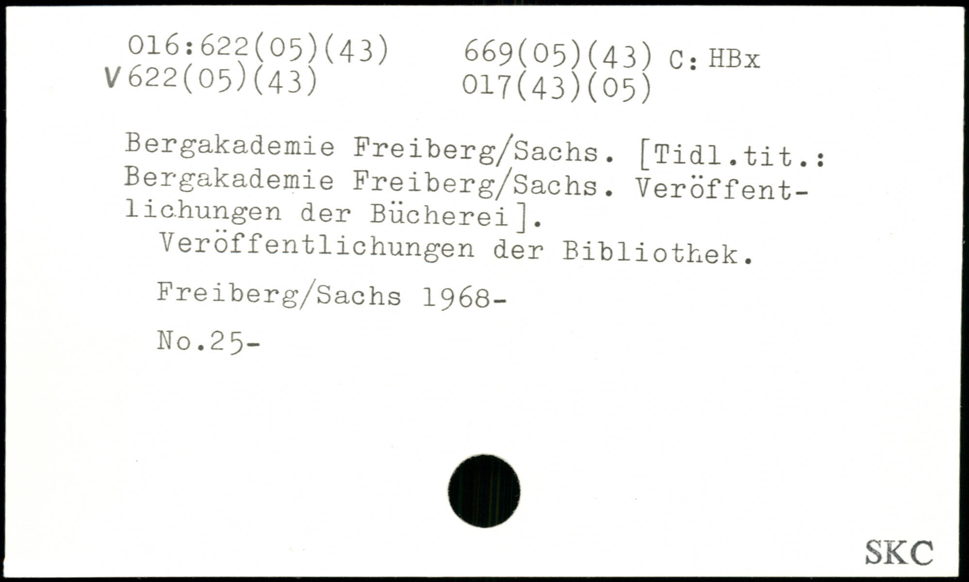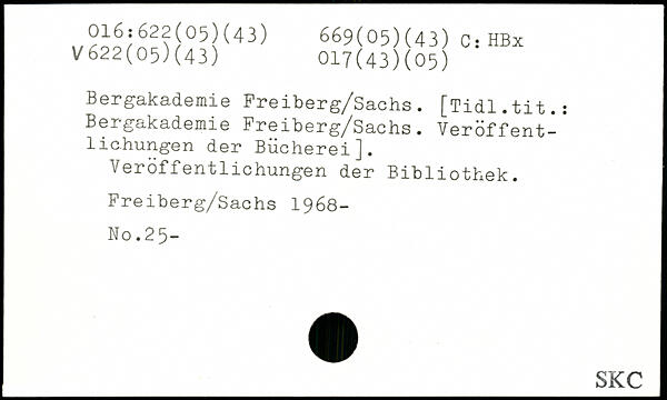 Bergakademie Freiberg/Sachs. [Tidl.tit.: Bergakademie Freiberg/Sachs. Veröffentlichungen der Bücherei]. Veröffentlichungen der Bibliothek. Freiberg/Sachs 1968- No.25-