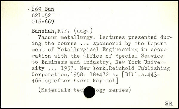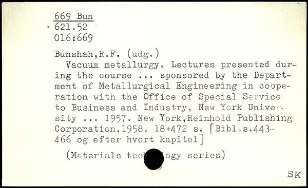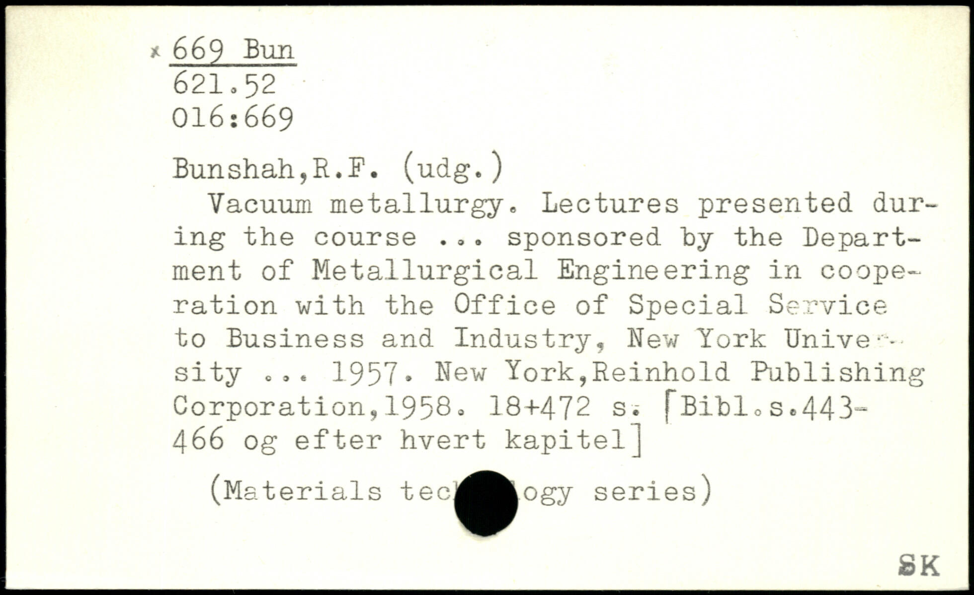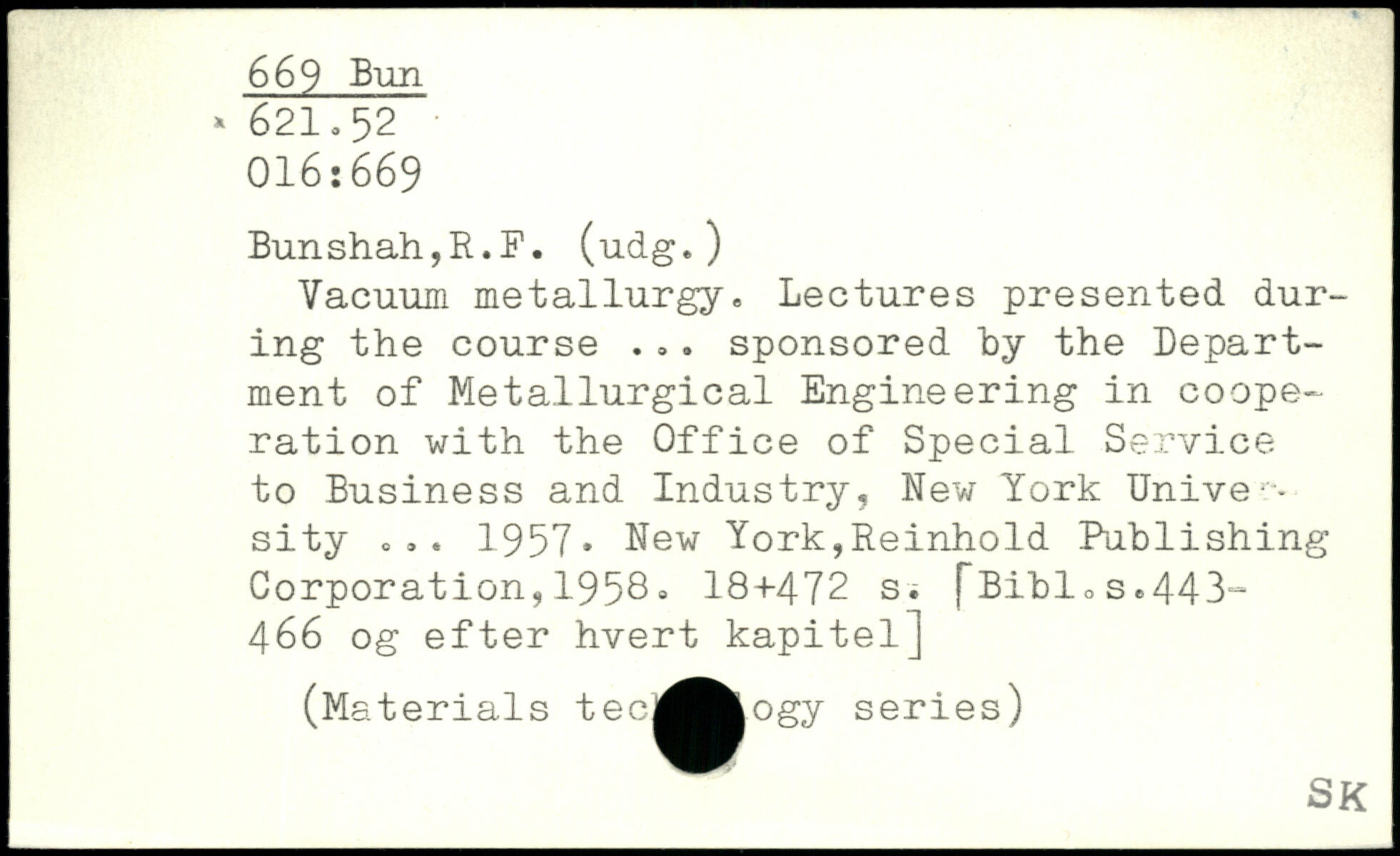 Vacuum metallurgy. Lectures presented during the course ... sponsored by the Department of Metallurgical Engineering in cooperation with the Office of Special Service to Business and Industry, New York Unive---sity ... 1957