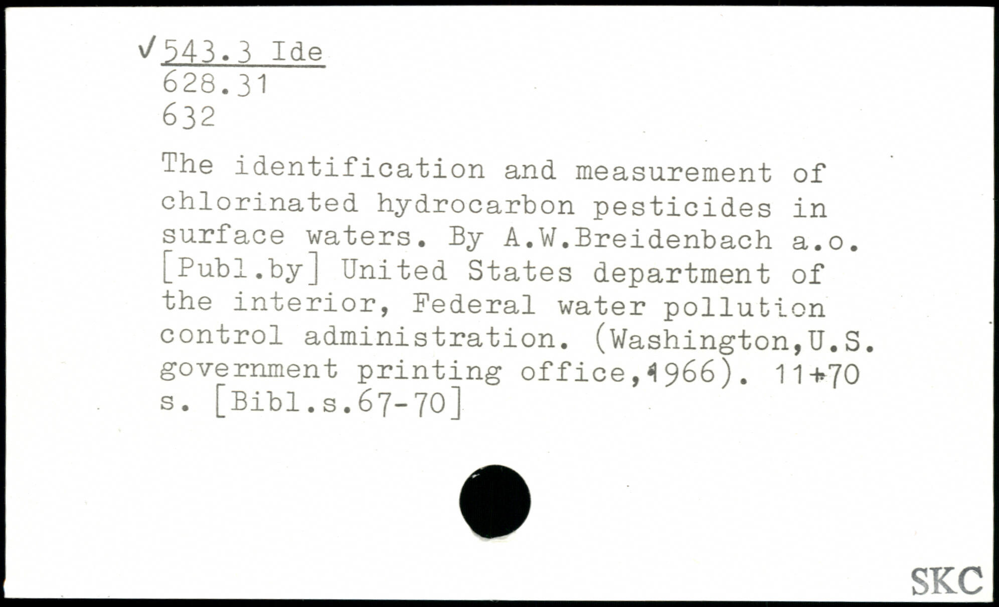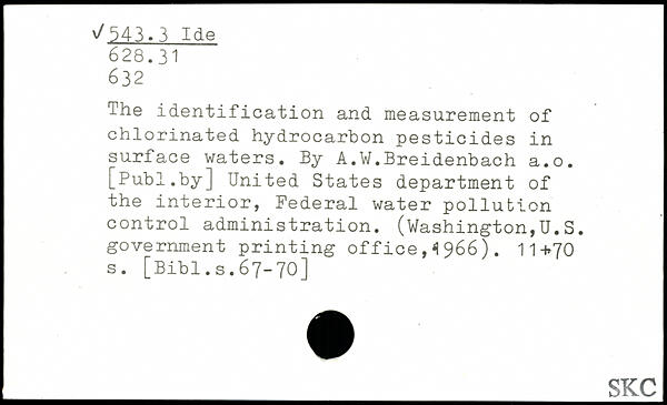The identification and measurement of chlorinated hydrocarbon pesticides in surface waters. By A.W.Breidenbach a.o.
