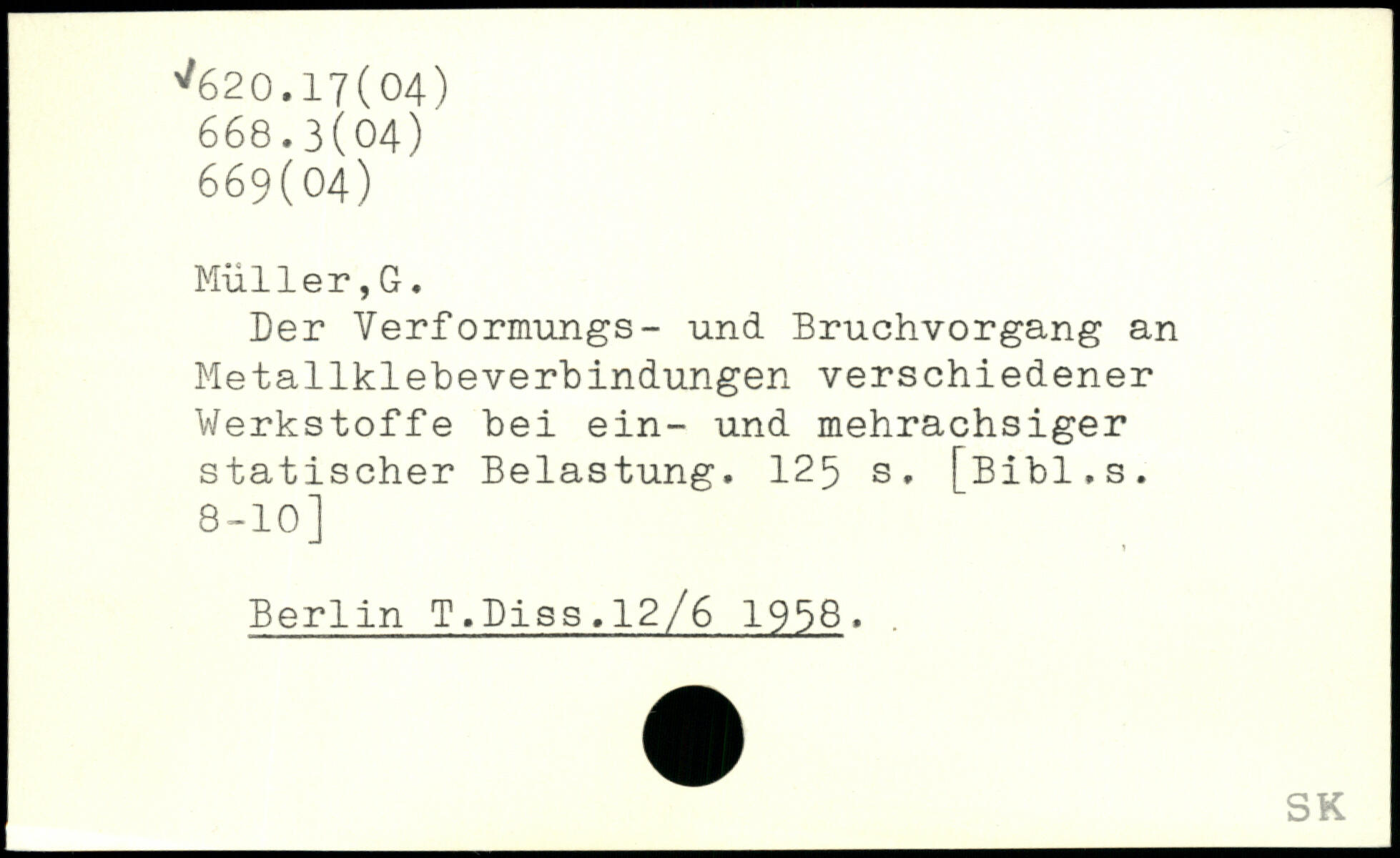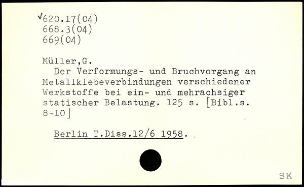 Der Verformungs- und Bruchvorgang an Metallklebeverhindungen verschiedener Werkstoffe bei ein- und mehrachsiger statischer Belastung.