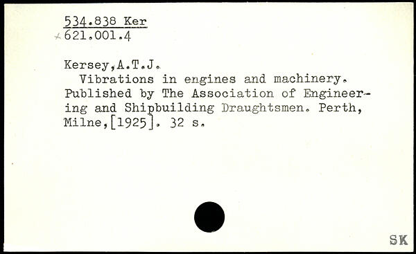 Vibrations in engines and machinery. Published by The Association of Engineering and Shipbuilding Draughtsmen.