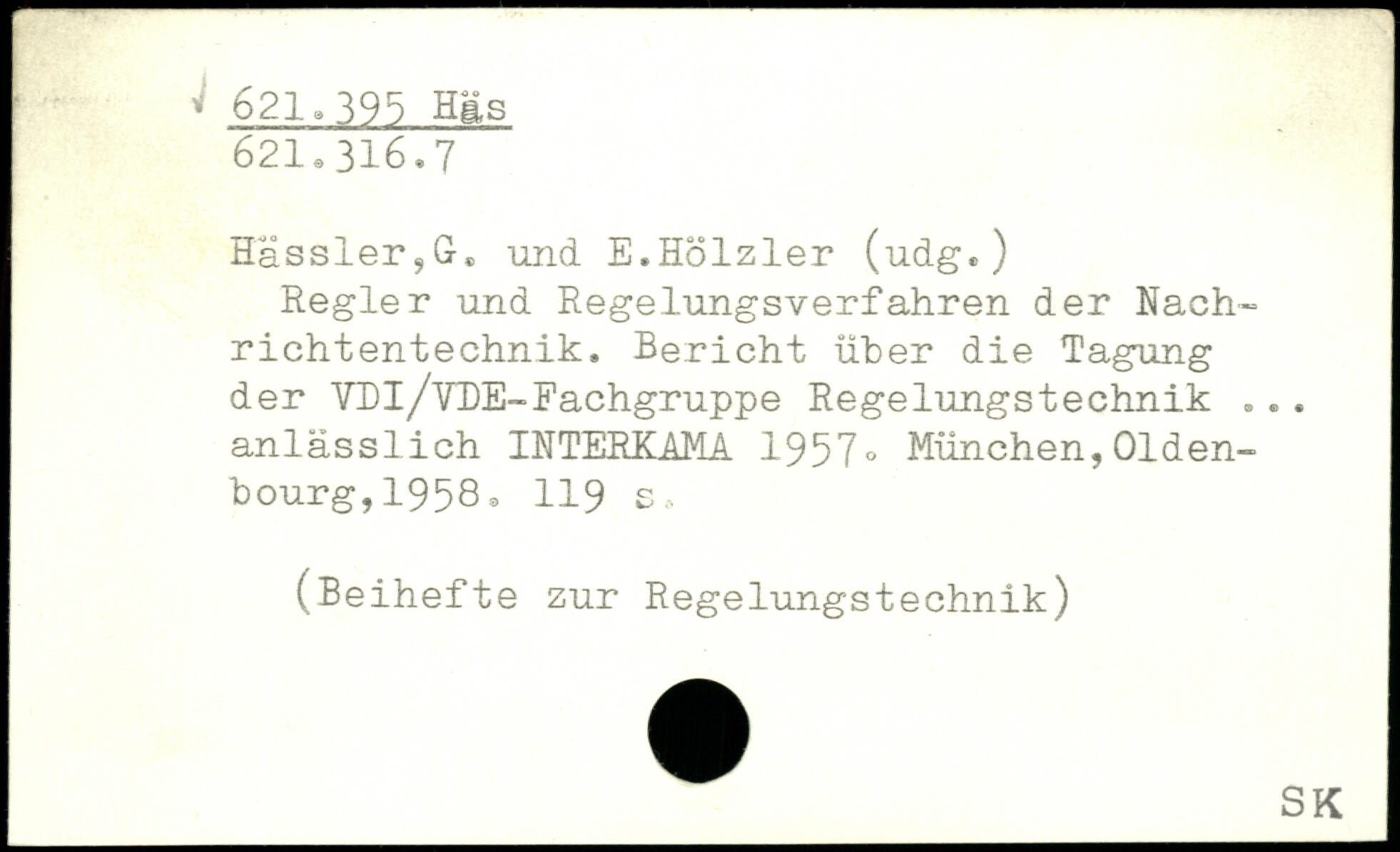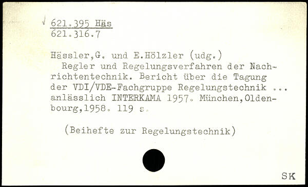 Regler und Regelungsverfahren der Nachrichtentechnik. Bericht über die Tagung der VDl/VDE-Fachgruppe Regelungstechnik ... anlässlich INTERKAMA 1957.