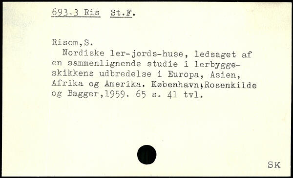 Nordiske ler-jords-huse, ledsaget af en sammenlignende studie i lerbyggeskikkens udbredelse i Europa, Asien, Afrika og Amerika. København^Rosenkilde og Bagger,1959