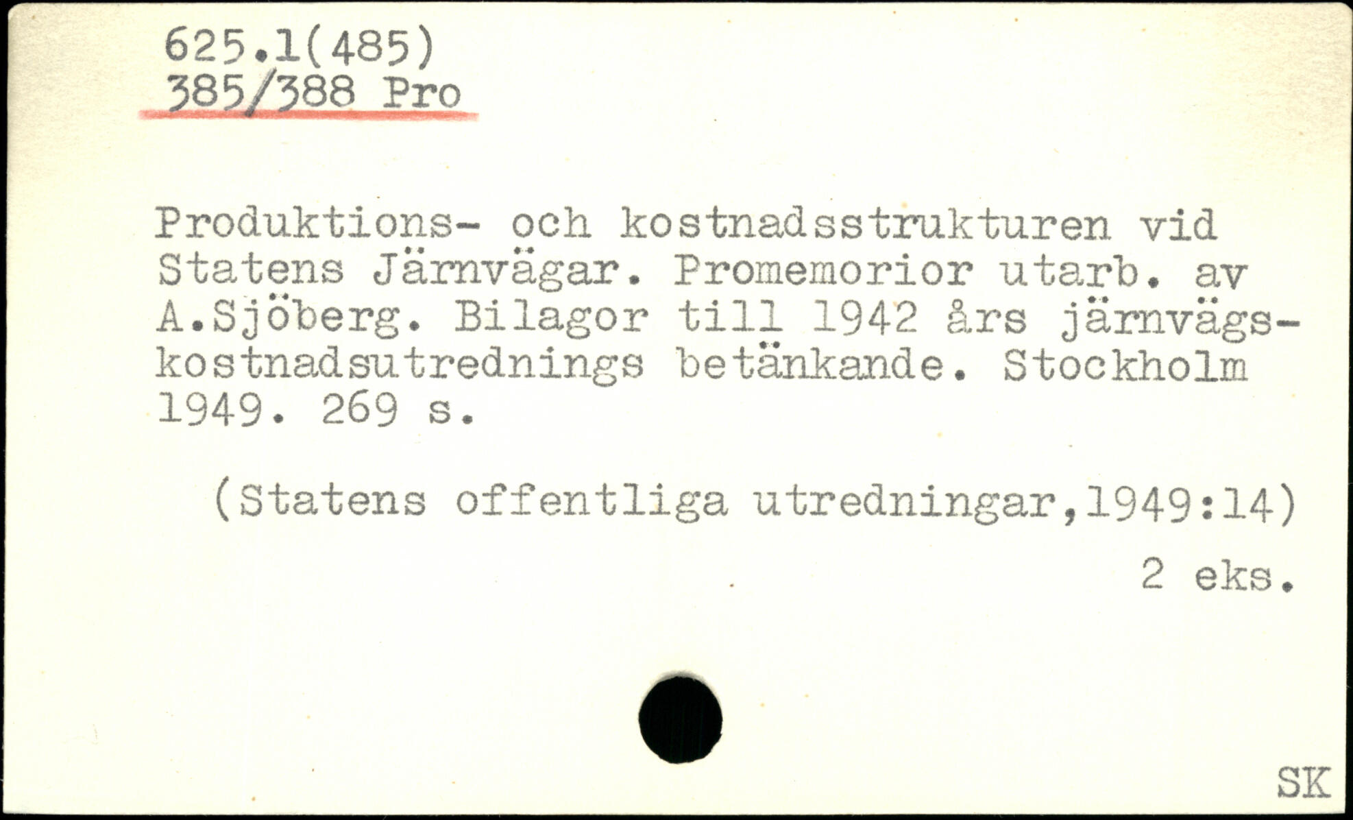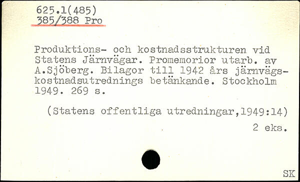 Produktions- och kostnadsstrukturen vid Statens Järnvägar. Promemorior utarb. av A.Sjöberg. Bilagor till 1942 års järnvägsko stnad sutrednings betänkande.