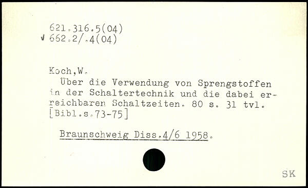 über die Verwendung von Sprengstoffen in der Schaltertechnik und die dabei erreichbaren Schaltzeiten.