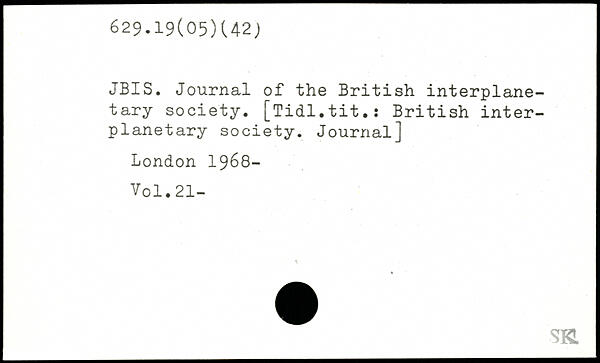 JBIS. Journal of the British interplanetary society. [Tidl.tit.: British interplanetary society. Journal]