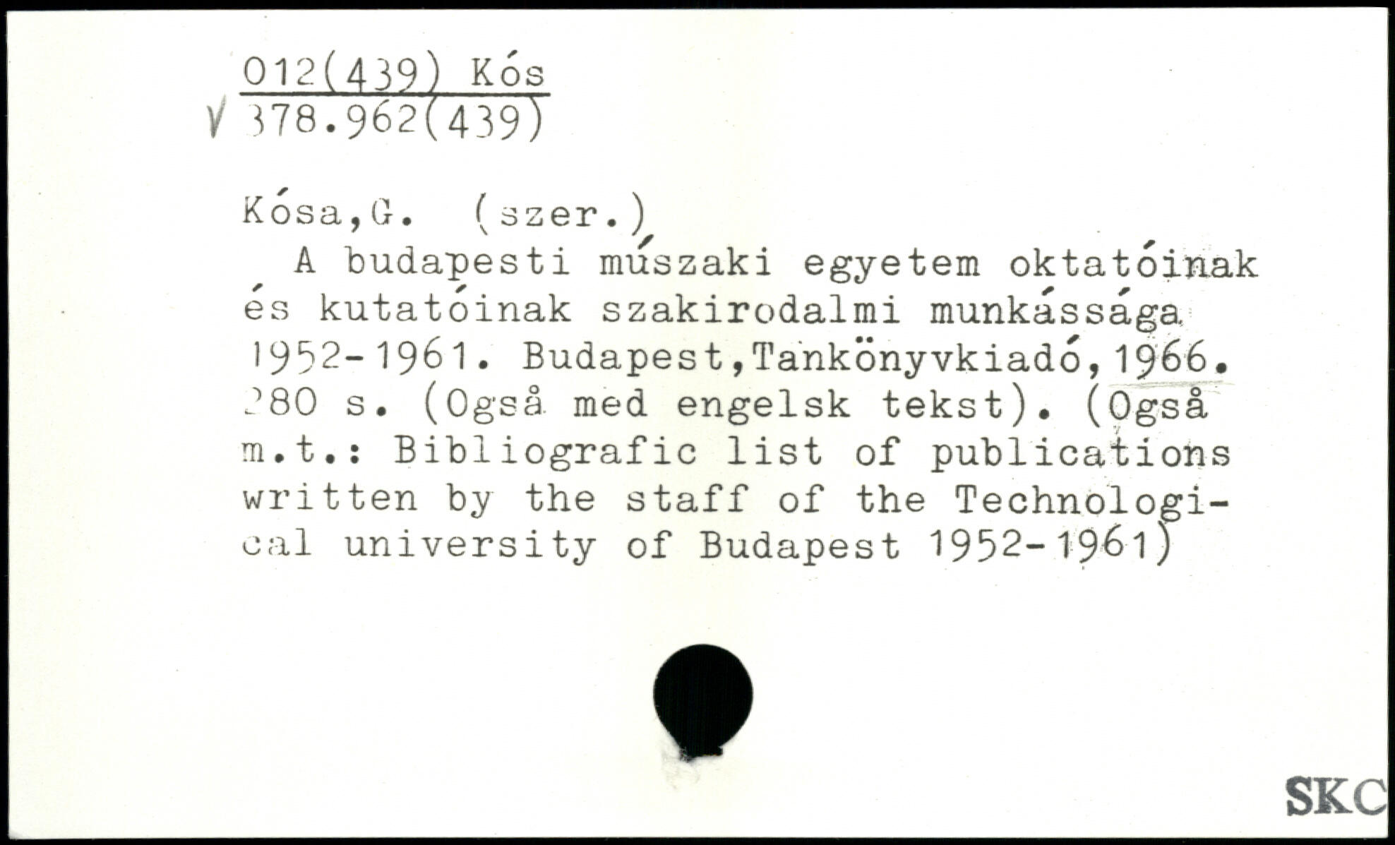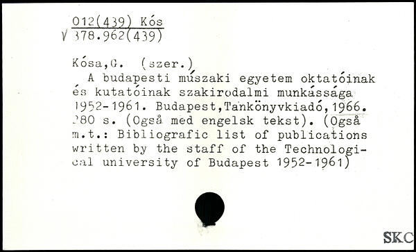 A budapesti muszaki egyetem oktatoinak es kutatoinak szakirodalmi munkåssåga 1992-1961. Budapest,Tankönyvkiado,19&6.