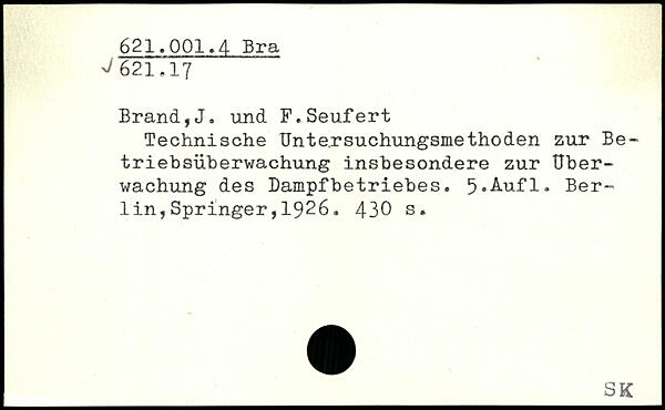 Technische Unte.rsuchungsmethoden zur Be-triebsüberwachung insbesondere zur Überwachung des Dampfbetriebes.