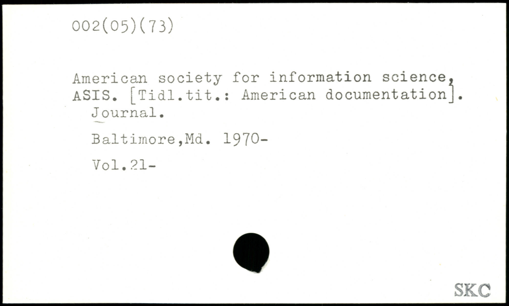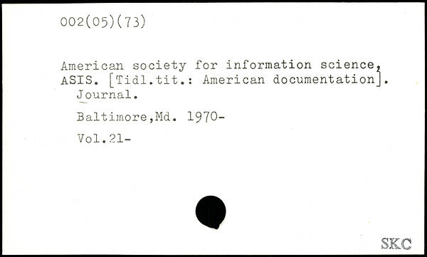 American society for information science, ASIS. [Tidl.tit.: American documentation]. Journal. Baltimore,Md. 1970-