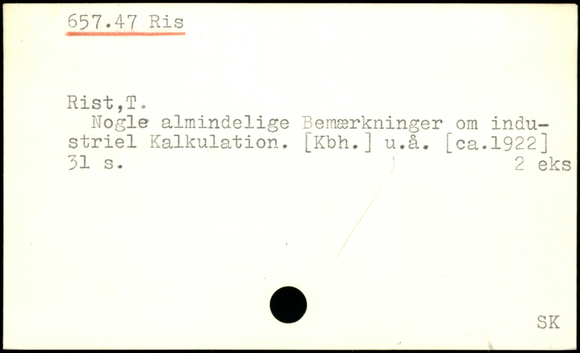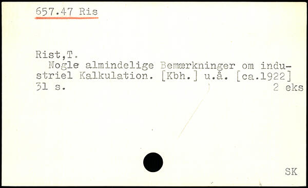 Nogle almindelige Bemærkninger om industriel Kalkulation. [Kbh.j u.å.