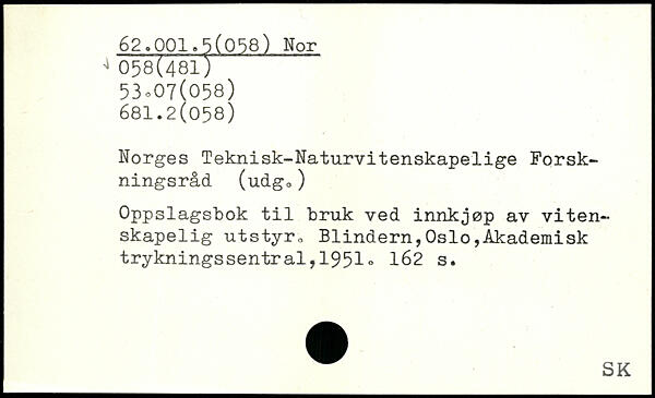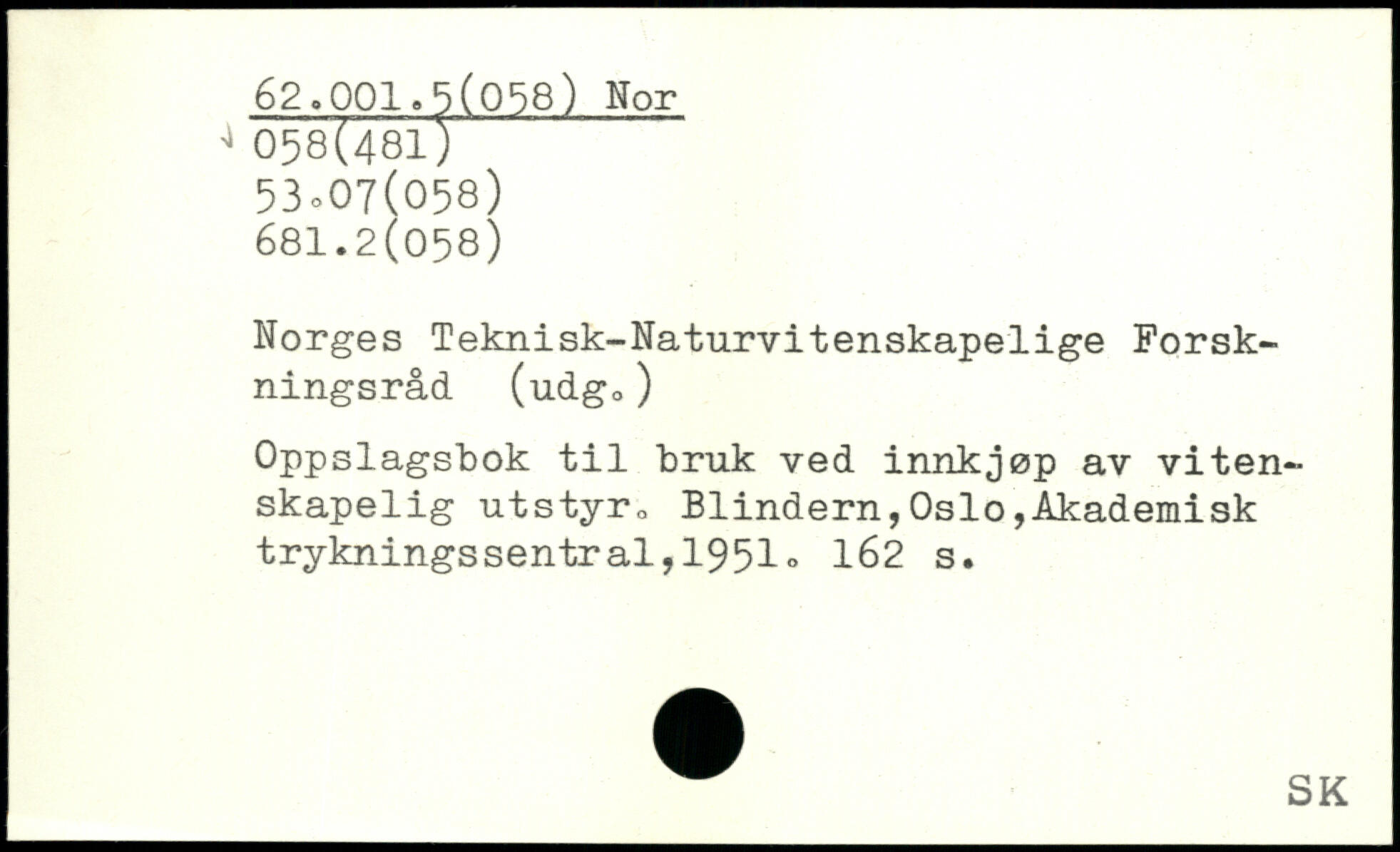 Norges Teknisk-Naturvitenskapelige Forsk-ningsråd (udgo) Oppslagsbok til bruk ved innkjøp av viten-skapelig utstyr