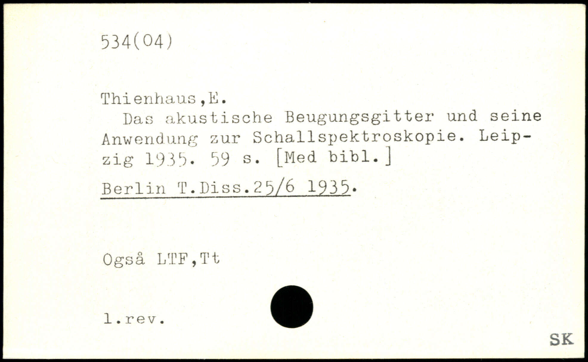 Das akustische Beugungsgitter und seine Anwendung zur Schall Spektroskopie. Leipzig 193h.