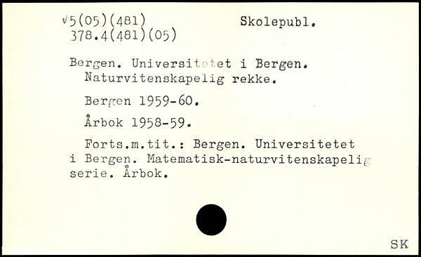 Bergen. Universitetet i Bergen. Uaturvitenskapelig rekke.