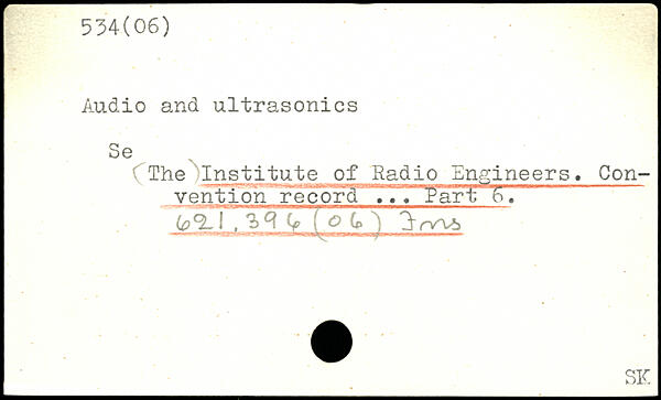 Audio and ultrasonics Se The Institute of Radio engineers. Con-vention record ... Part o. Lp .L7 7^> ^ £ '(^<9 0 j ' 3~ rv"V6
