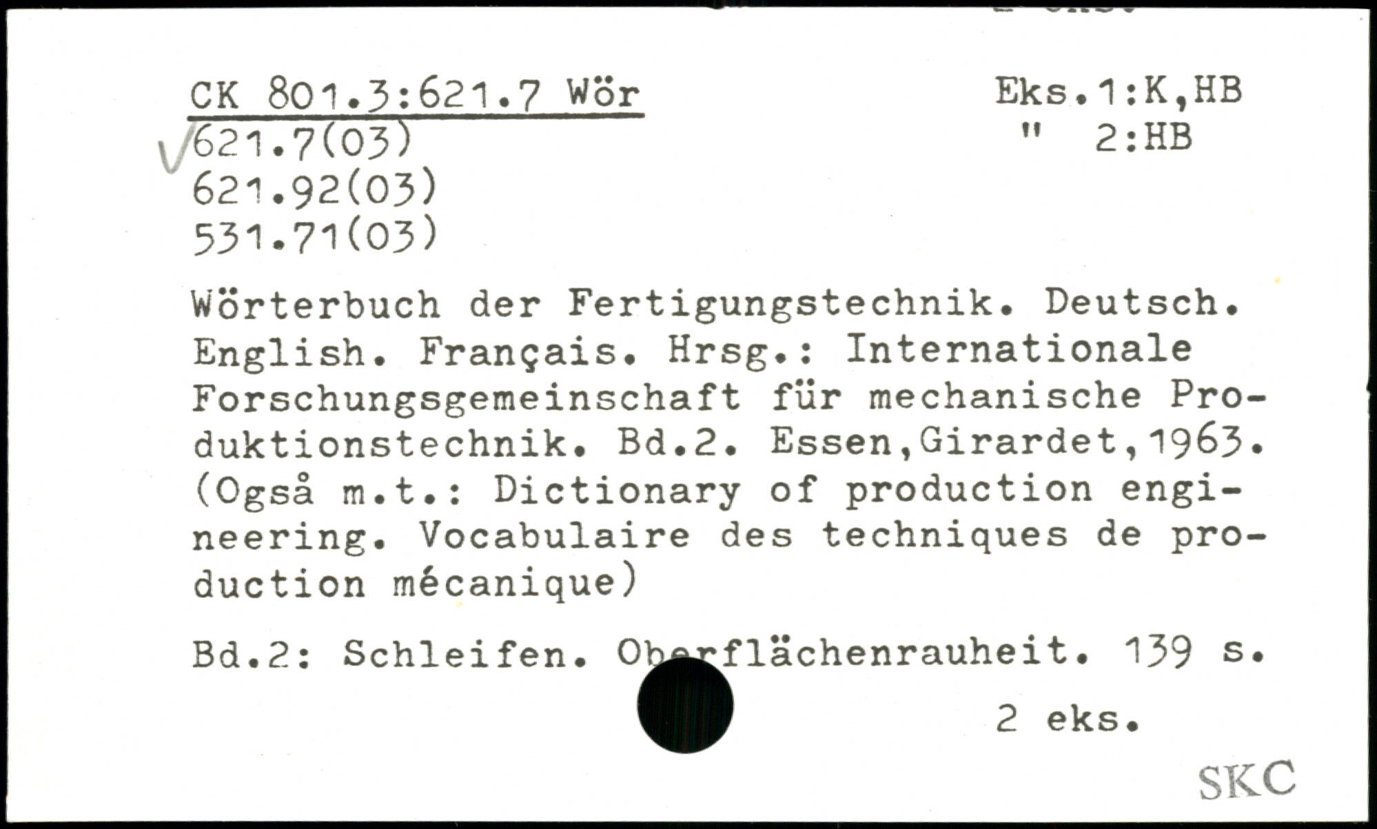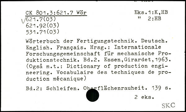 Wörterbuch der Fertigungstechnik. Deutsch. English. Français. Hrsg.: Internationale Forschungsgemeinschaft für mechanische Produktionstechnik.