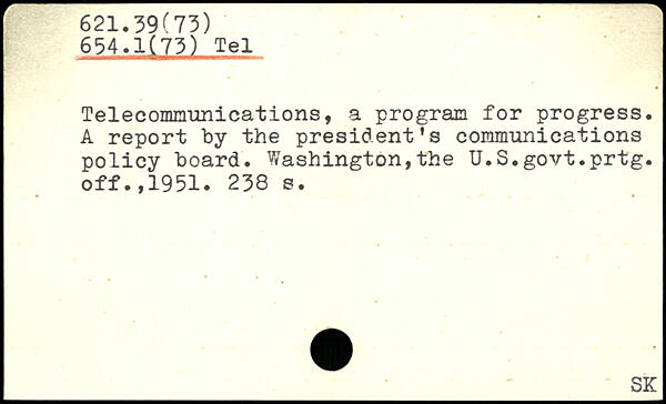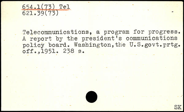 Telecommunications, a program for progress. A report by the president's communications policy board. Washington,the U.S.govt.prtg. off.,1951.