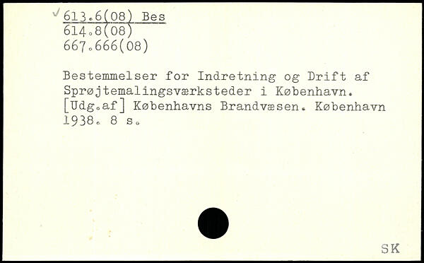 Bestemmelser for Indretning og Drift af Sprøjtemalingsværksteder i København. [TJdg0af] Københavns Brandvæsen.