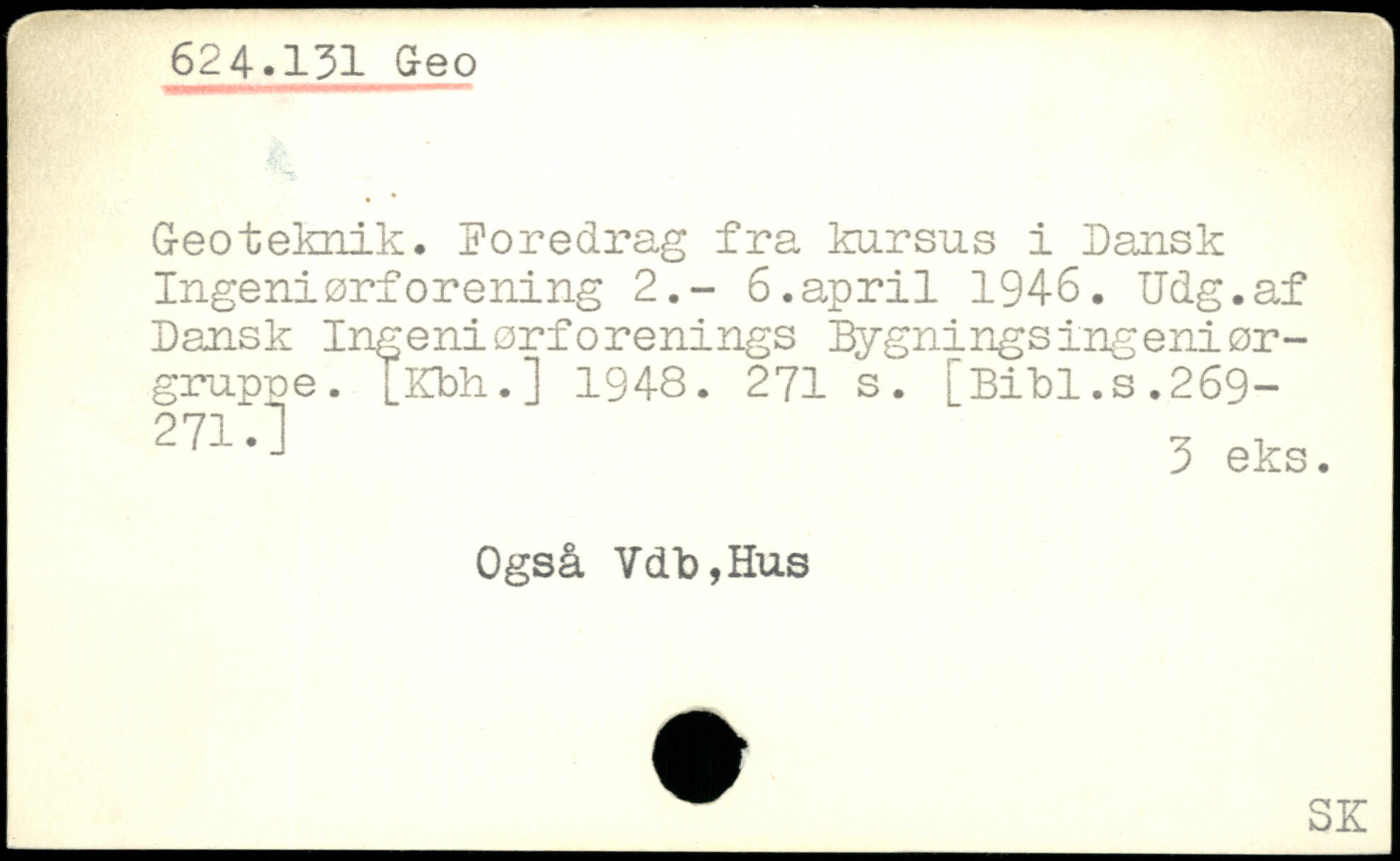 Geoteknik. Foredrag fra kursus i Dansk Ingeniørforening 2.- 6.april 1946. Udg.af Dansk Ingeniørforenings øgnings ingeniørgruppe. [Kbh.] 1948.