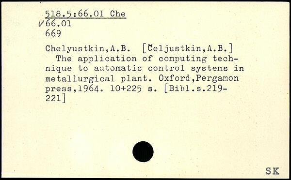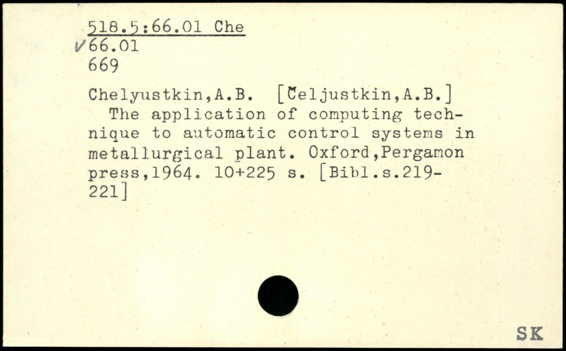 Chelyustkin,A.B. [Celjustkin,A.B.] The application of computing technique to automatic control systems in metallurgical plant.
