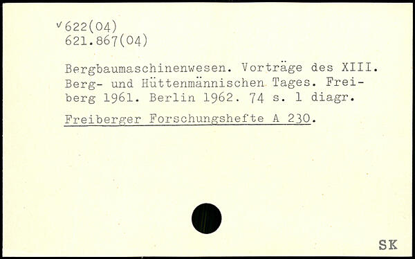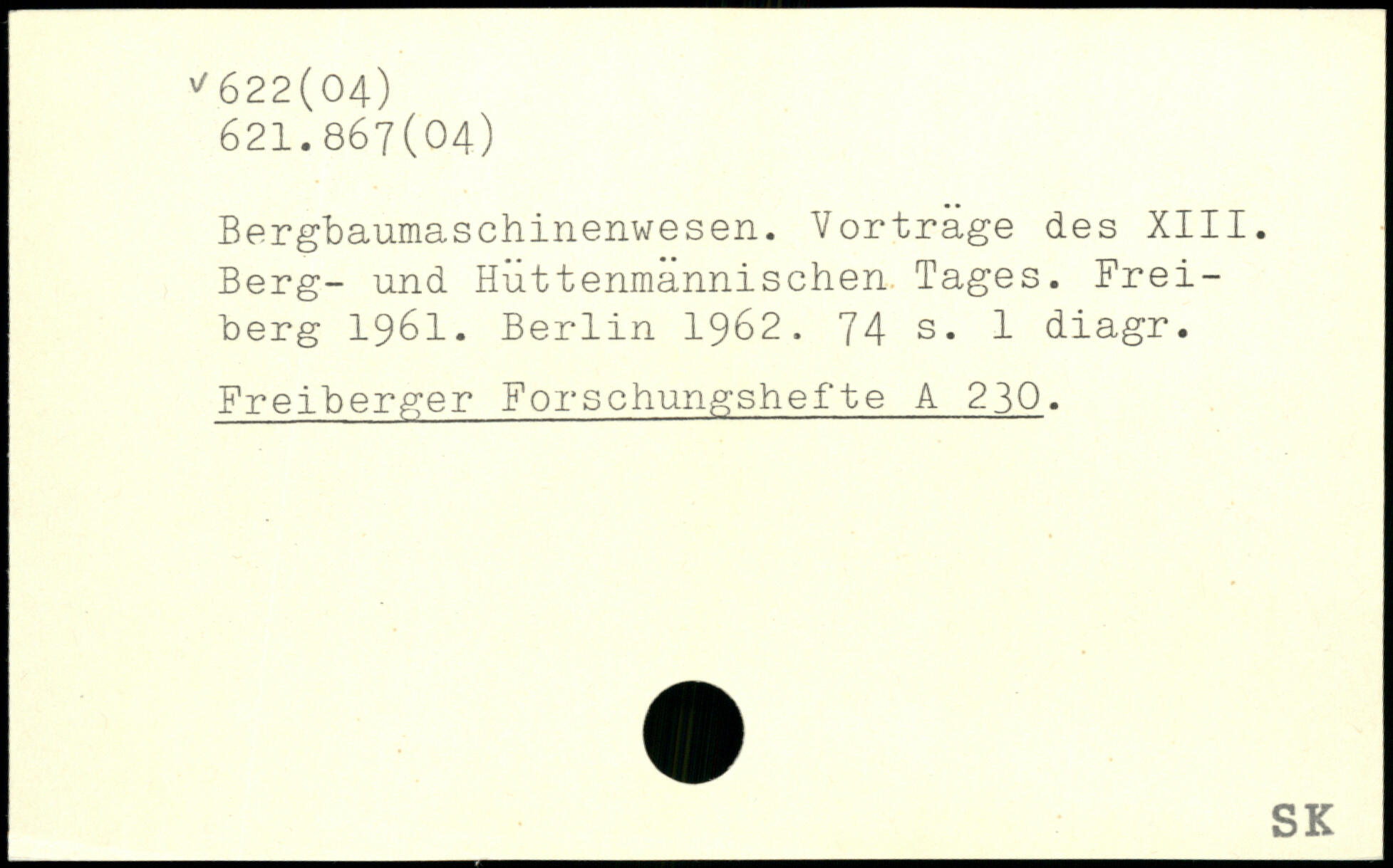 Bergbaumaschinenwesen. Vortrage des XIII. Berg- und Huttenmannischen Tages. Freiberg 1961.